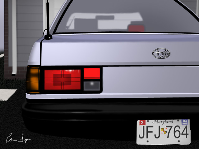 Parked outside a suburban home, a 1992 Subaru Loyale awaits its next action-packed adventure on the road.