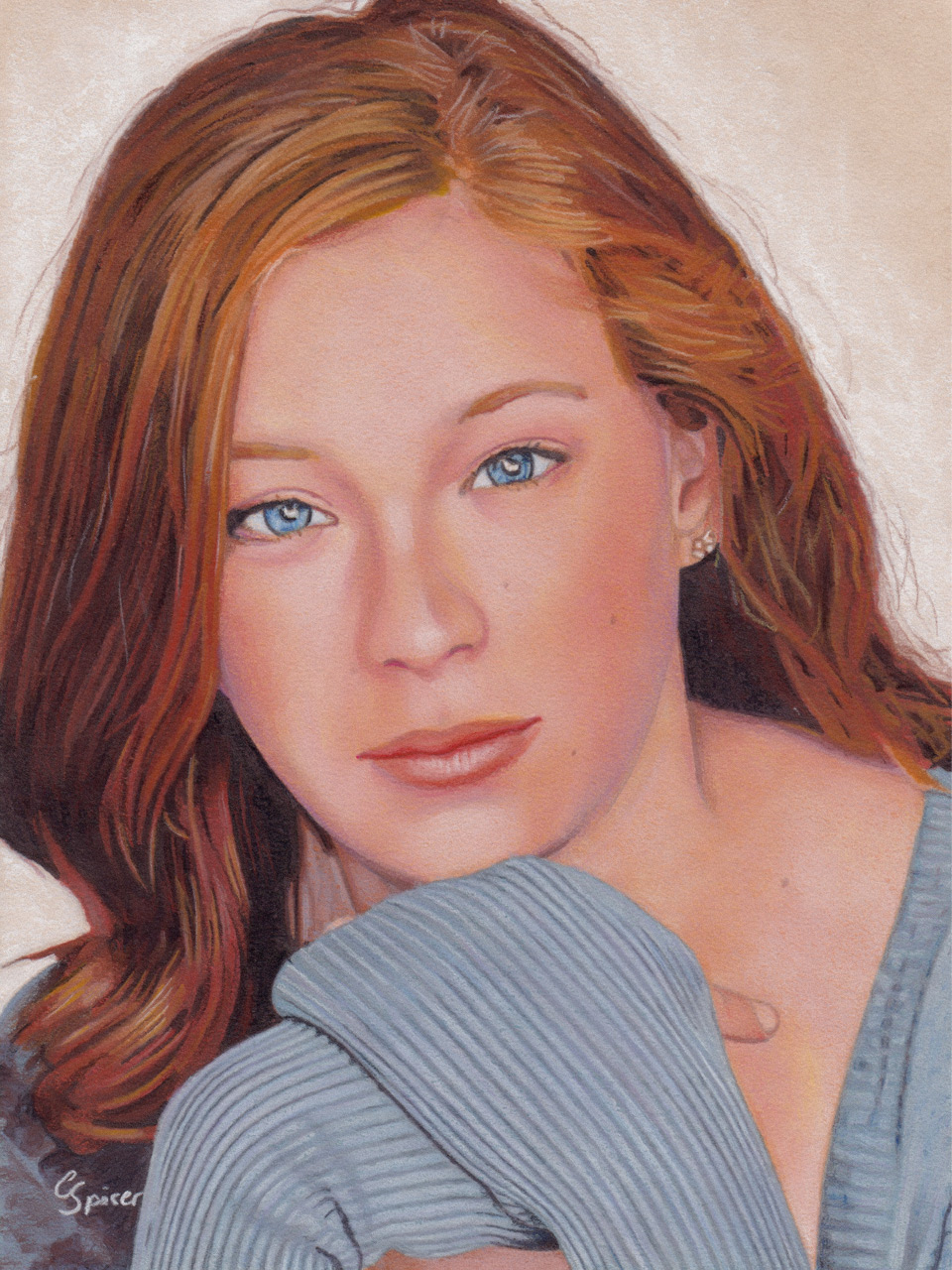 Portrait drawing of the beautiful and talented Mina Sundwall (Penny Robinson from Lost in Space), created with Ohuhu alcohol markers and Faber-Castell pastel pencils on 6 x 8in Strathmore toned tan paper.